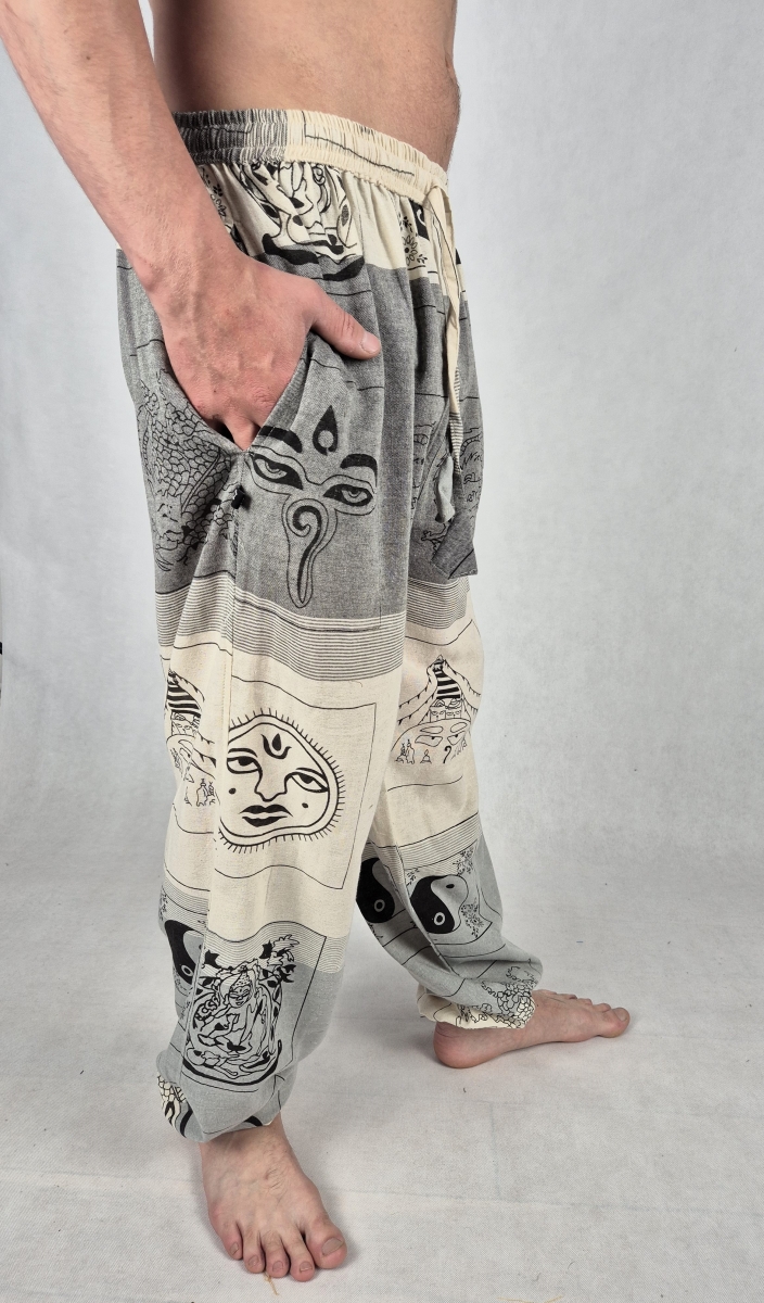 Wprowadź do swojej garderoby nutę orientu dzięki naszym wyjątkowym spodniom męskim wykonanym w 100% z naturalnej bawełny. Te lekkie, przewiewne spodnie to idealny wybór zarówno na co dzień, jak i podczas praktyk jogi, spacerów po plaży czy relaksu w domu. Dzięki unikalnym nadrukom z symbolami buddyjskimi, oczami Buddy, smokami i yin-yang, spodnie przyciągają uwagę swoją oryginalnością i duchowym klimatem.